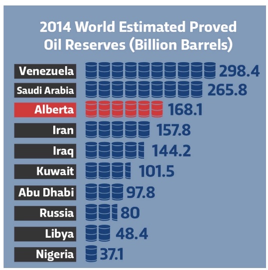 Estimated oil reserves by nation (and Alberta). Courtesy @RazorOil.