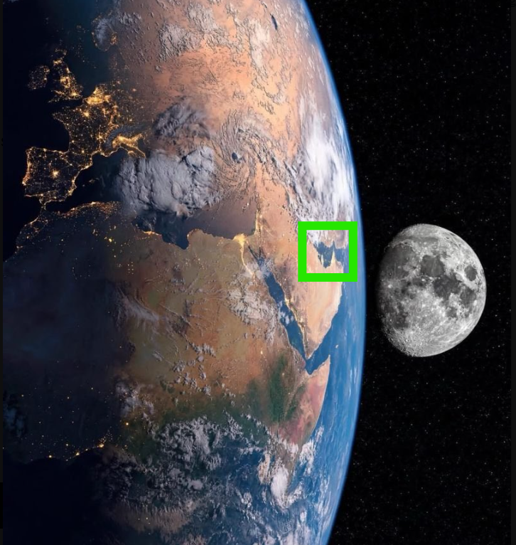 North Africa, Europe, Eurasia and Persian Gulf (green box), plus Moon. Courtesy NASA.