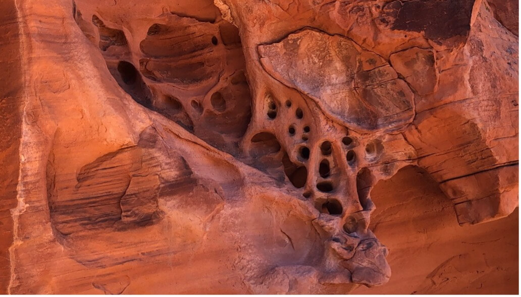 Modern eroded sandstone reveals “hard spots” in the lithic structure. BWK photo.