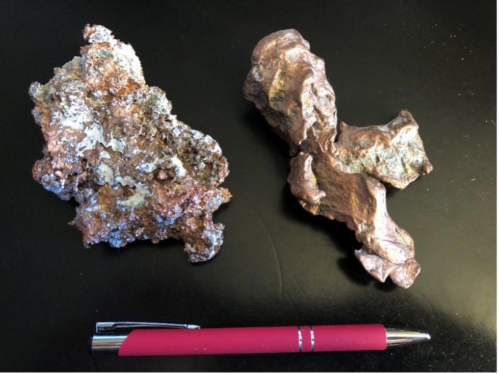 Just east of northern Minnesota, in Michigan’s Keweenaw Peninsula, this ancient geology yields deposits of elemental copper, both at surface and at depth. Plus, the region is famous for its hunks of copper that people have located in post-glacial deposits called “float,” because the copper specimens sort of floated along with the ice in Pleistocene Time.