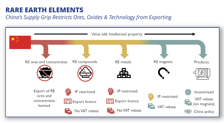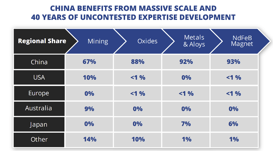 In essence, China dominates every level of the supply chain, from mineral ores in the ground to processing, compounds, downstream intermediate products, and final items. They’ve had 40 or more years to figure things out, and for the U.S. and West it’s tough sledding ahead.