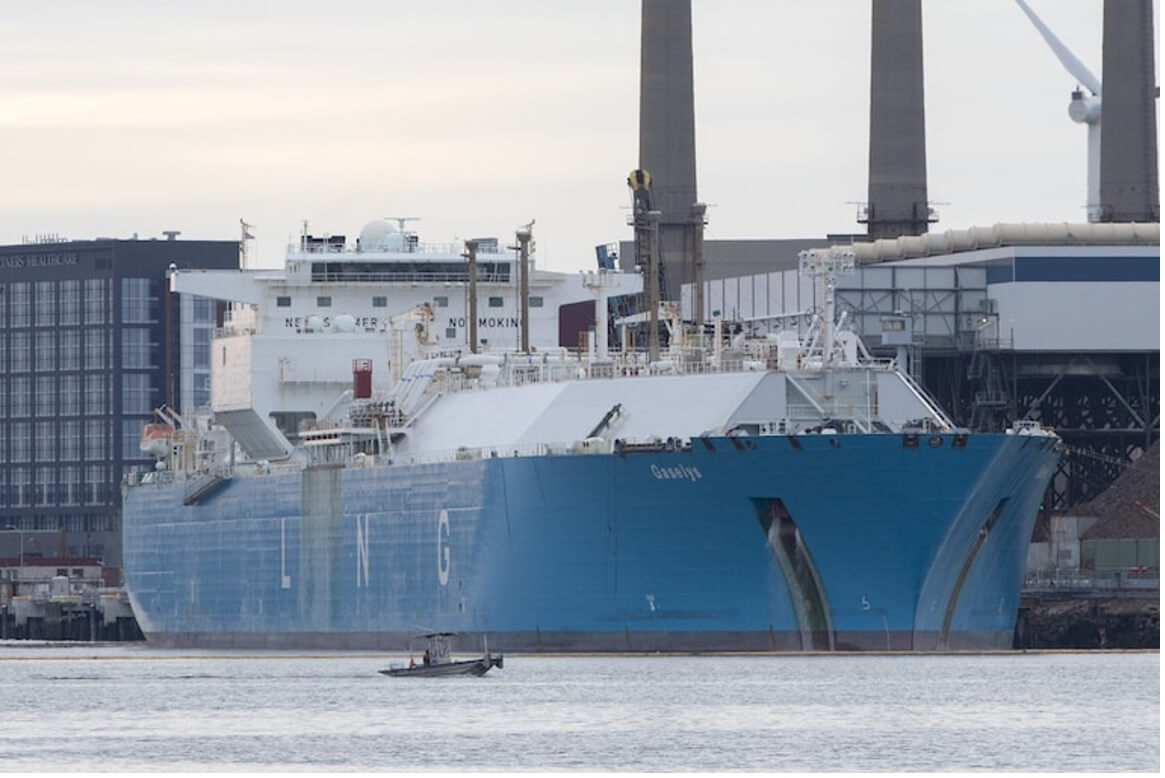 Tanker with Russian LNG at Mystic River Terminal, near Boston (2018). Courtesy Washington Post.