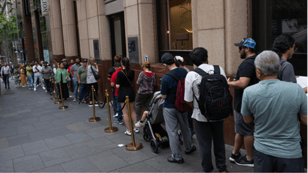 People lined up to buy (and sell) gold in Sydney. Courtesy 9News.com.au.