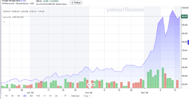 NY Merc price of oil. Courtesy Yahoo Finance.